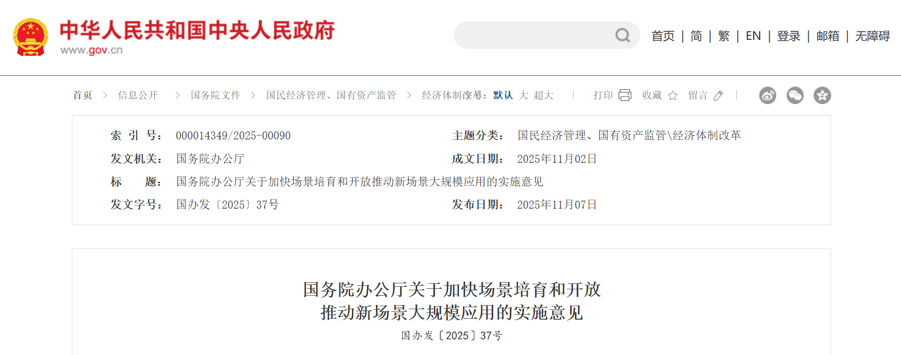 - 11-082025 《關于加快場景培育和開放推動新場景大規(guī)模應用的實施意見》發(fā)布